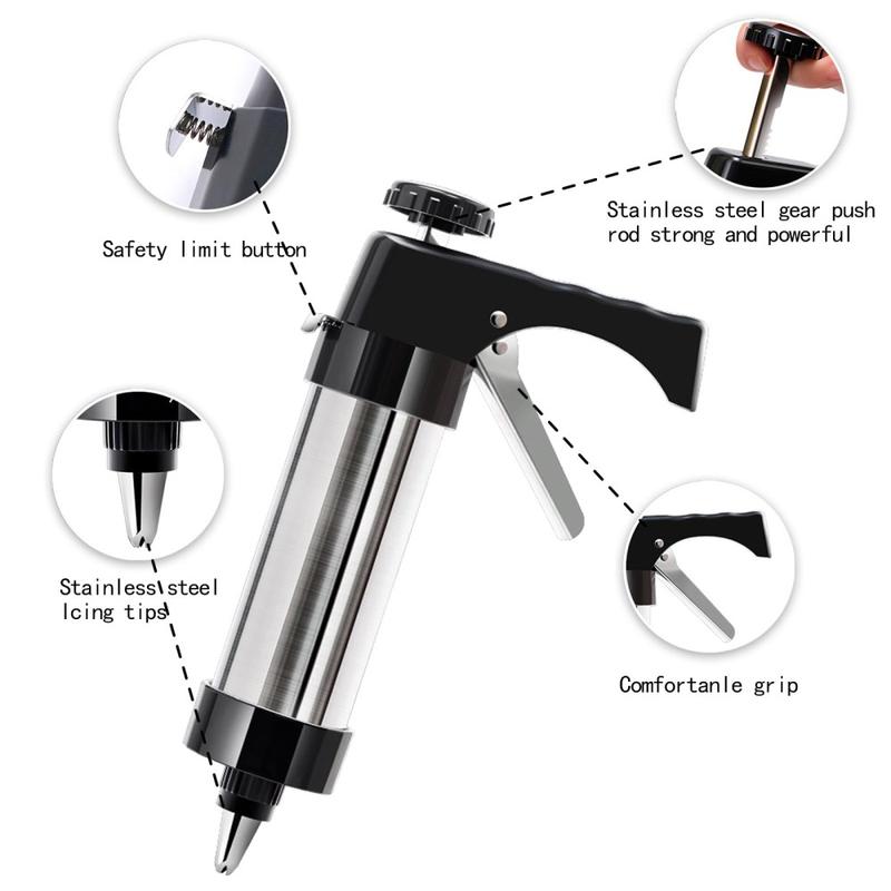 Roestvrijstalen koekjesperspistool bakset - 8 spuitmondjes & 13 schijven, BPA-vrij