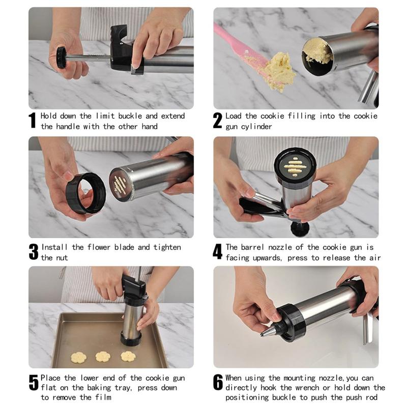 Koekjespersen helpen om gelijkmatige vormen te maken, waardoor koekjes gelijkmatiger bakken. Roestvrijstalen bakvormen zijn populair omdat ze bestand zijn tegen corrosie en hygiënisch blijven na verloop van tijd. Verwisselbare schijven en spuitmondjes maken één pers geschikt voor veel verschillende bakstijlen, van klassieke koekjes tot decoratieve desserts.