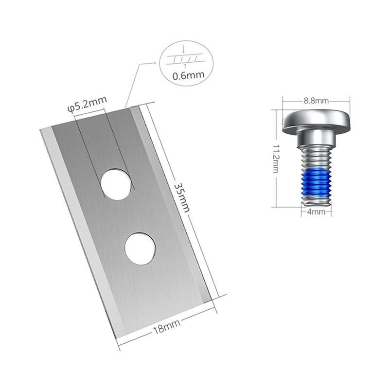 Met nauwkeurige afmetingen van 35 x 18 x 0,75 mm en een bevestigingsontwerp met twee gaten zijn de messen gemaakt voor een stevige pasvorm en stabiele werking op compatibele robotmaaiers. De set bevat ook bijpassende schroeven met blauwe schroefborgmiddel om losraken tijdens gebruik te helpen voorkomen, waardoor onderhoud eenvoudiger en betrouwbaarder wordt.