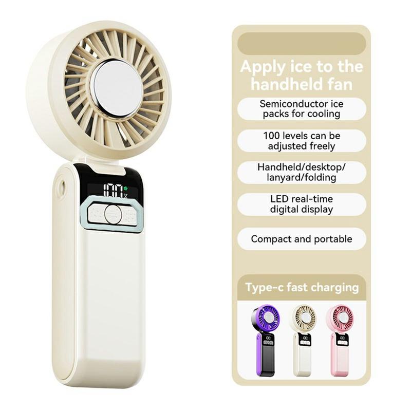 S2 draagbare handventilator - oplaadbare zakventilator met 100 snelheden, led-display en opvouwbaar 3-in-1-ontwerp