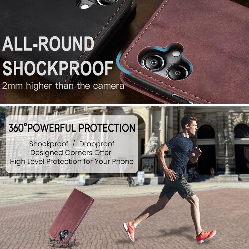 Een combinatie van TPU en polyurethaan biedt volledige bescherming voor Samsung Galaxy A06 en beschermt deze tegen stof, vuil, stoten, krassen en dagelijkse slijtage. Magnetische aantrekkingskracht houdt de behuizing gesloten en het slimme ontwerp maakt handsfree gebruik mogelijk tijdens het bekijken van media-inhoud.