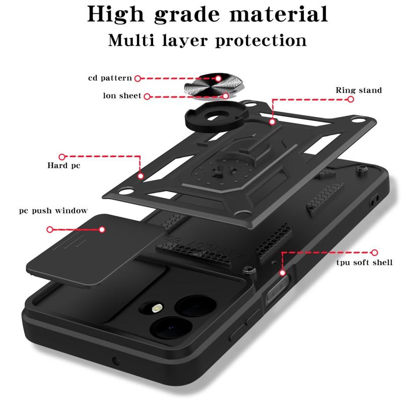 - Rotary Ring hybride case met camera shield voor Samsung Galaxy A07 4G, Galaxy A07 5G