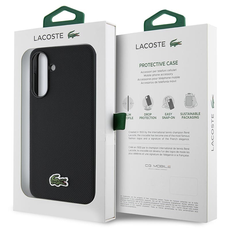 De Petit Piqué-textuur is geïnspireerd op Lacoste's klassieke polostof, bekend om de perfecte balans tussen structuur en comfort. Microvezelvoeringen worden vaak gebruikt in hoogwaardige hoesjes om wrijving te verminderen en ervoor te zorgen dat apparaten er als nieuw blijven uitzien.