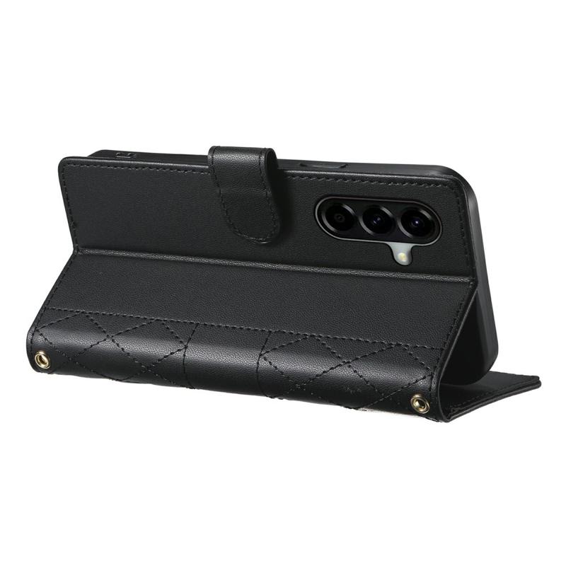 Voeg elegantie en functionaliteit toe aan uw dagelijkse draagervaring met de Luxury Quilted wallet case voor Samsung Galaxy A57. Deze stijlvolle hoes is ontworpen voor mensen die zowel mode als functionaliteit belangrijk vinden en combineert eersteklas polyurethaan met een portemonnee-ontwerp - compleet met afneembare bandjes voor eenvoudig, handsfree gemak.