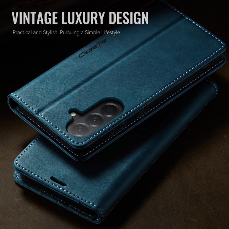 De CASEME 033 Series Wallet Case voor Samsung Galaxy A57 is gemaakt van kalf textuur polyurethaan gecombineerd met TPU, en biedt full-body bescherming tegen krassen, stoten en dagelijks gebruik met behoud van een premium, elegante look.