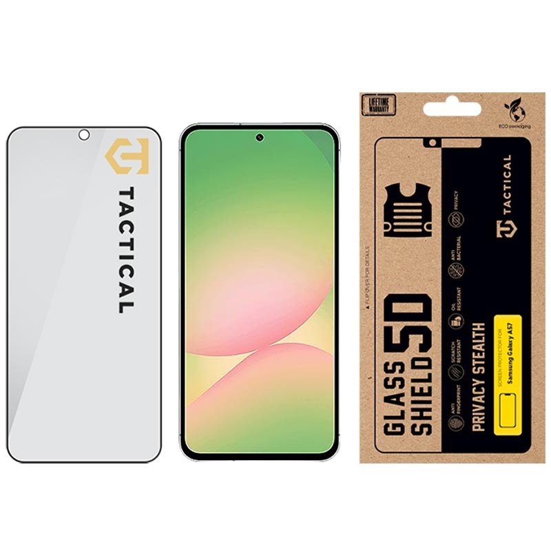 De Tactical Glass Shield Privacy Stealth 5D combineert privacybescherming met serieuze duurzaamheid. Het helpt de inhoud van het scherm van uw Samsung Galaxy A57 verborgen te houden vanuit zijdelingse hoeken en biedt tegelijkertijd betrouwbare schokbestendigheid en een schone, responsieve touch-ervaring.