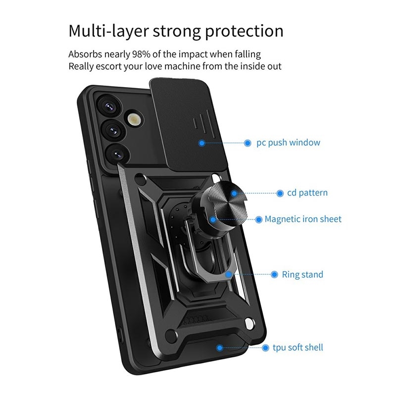- Rotary Ring hybride case met camera shield voor Samsung Galaxy A57