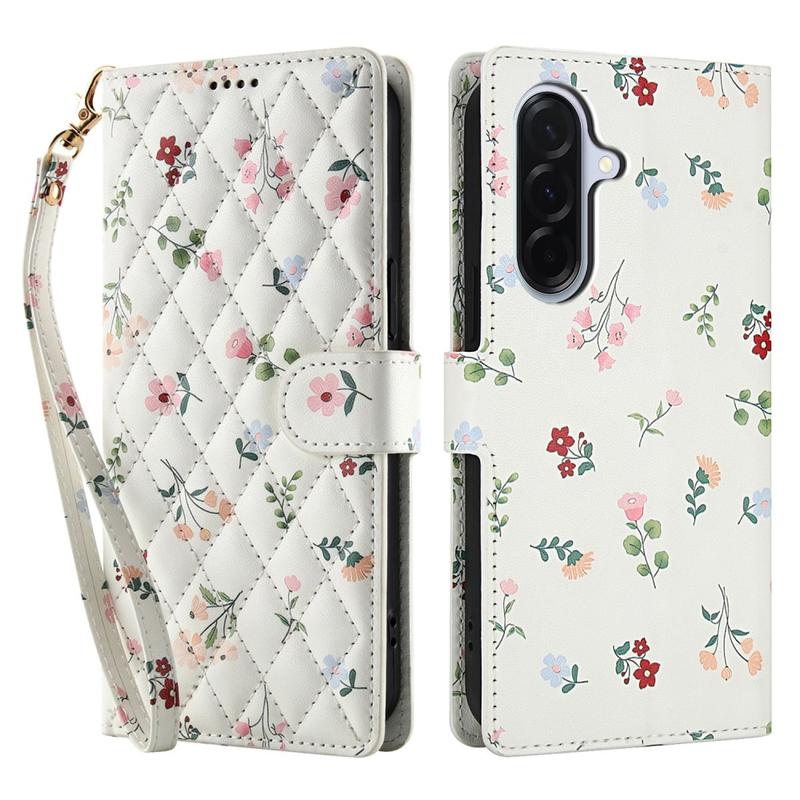 Verfris je Samsung Galaxy A57 met een slanke flip-portemonnee die veilige bescherming combineert met praktisch gemak voor elke dag. De ruitvormig gestikte voorkant en het kleine bloemmotief voegen een elegante stijl toe, terwijl een zacht TPU omhulsel vallen opvangt en een polyurethaan omhulsel beschermt tegen krassen. Meerdere kaartsleuven, een geldvakje en een meegeleverd polsriempje maken van deze portemonnee de ideale oplossing voor woon-werkverkeer, reizen of een avondje uit.