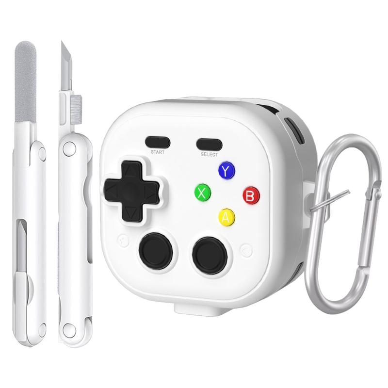 Samsung Galaxy Buds 4/4 Pro-hoesje in gamingcontroller-stijl met karabijnhaak en reinigingsgereedschap - Wit