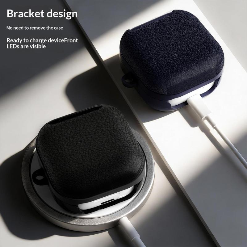 Deze hoes biedt een balans tussen stijl, bescherming en gemak. De hoogwaardige materialen geven hem een verfijnde uitstraling, terwijl de beschermende structuur uw oordopjes beschermt tegen dagelijkse schade. Met extra's zoals de karabijnhaak, reinigingspen en opvouwbare standaard wordt het een veelzijdig accessoire voor gebruikers die meer willen dan een standaard beschermhoes.