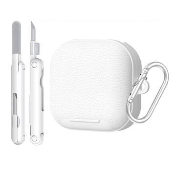 Samsung Galaxy Buds4/Buds4 Pro elegante hoes met karabijnhaak en reinigingspennen - wit