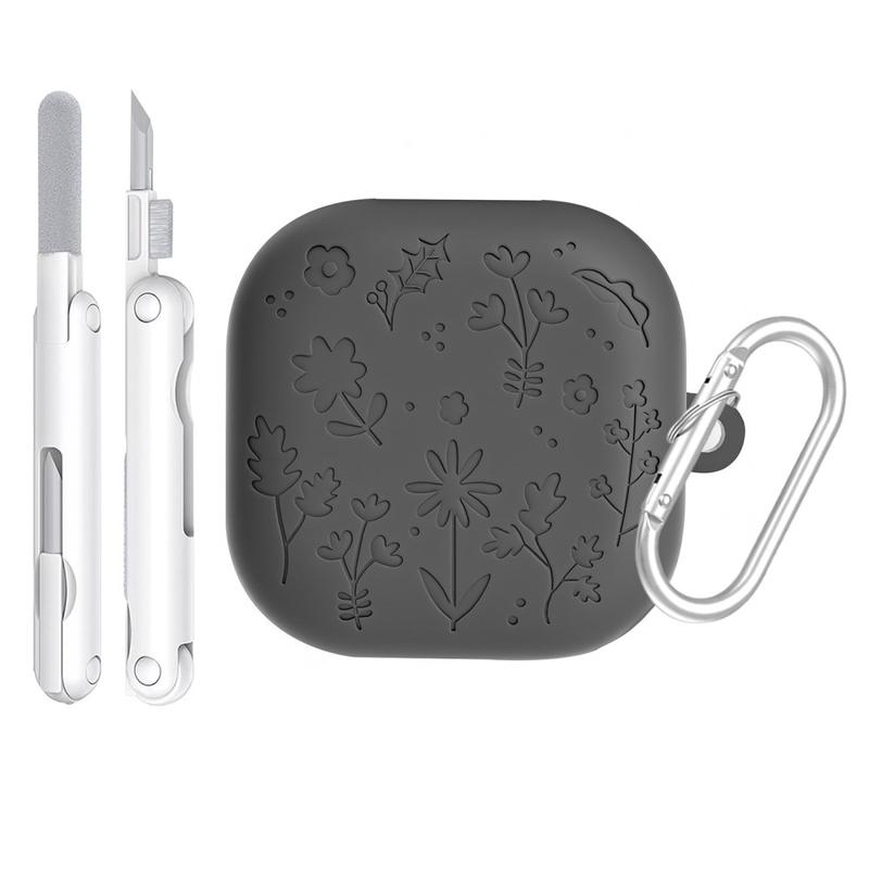 Siliconen hoesje met bloemenmotief, reinigingspennen en karabijnhaak voor Samsung Galaxy Buds4, Galaxy Buds4 Pro