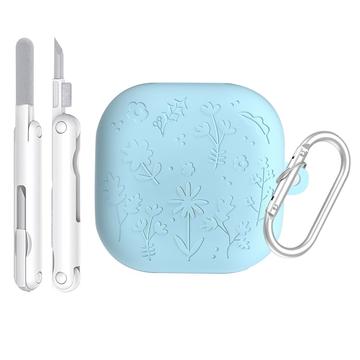 Siliconen hoesje met bloemenmotief, reinigingspennen en karabijnhaak voor Samsung Galaxy Buds4, Galaxy Buds4 Pro