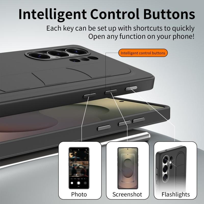 Slim Hybride Hoesje met Staande Grip voor Samsung Galaxy S23 Ultra - NFC Aanpasbare Sneltoetsen, Polsband Kickstand & Legering Camerabescherming