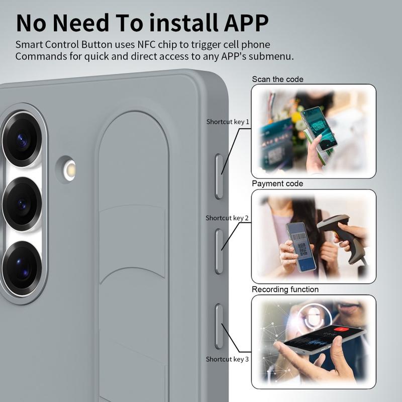 Deze slimme hybride hoes is uitgerust met drie intelligente NFC-knoppen waarmee je met één druk op de knop snel toegang krijgt tot apps als Camera, Zaklamp of Screenshot. Niet opladen, geen extra apps - gewoon eenvoudige, directe functionaliteit.