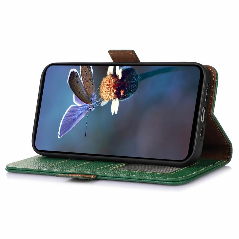 - Eersteklas echt leer - Gemaakt van hoogwaardig rundleer met een verfijnde textuur, aangevuld met een duurzame TPU-binnenlaag die je telefoon stevig vasthoudt en schokken absorbeert.