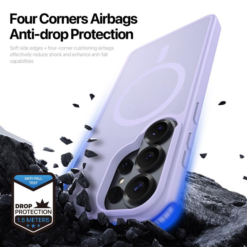 Bescherm je Samsung Galaxy S26 Ultra met een slanke, matte hoes die je direct op MagSafe-opladers en -accessoires kunt klikken. De Yind-serie combineert een krasbestendige pc-achterkant met schokabsorberende TPU-randen en een nauwkeurig uitgelijnde magnetische ring, voor kabelvrije voeding en allround bescherming tegen vallen zonder omvangrijke zakken.