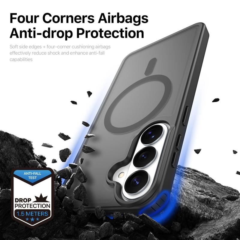 Bescherm je Samsung Galaxy S26 met een slanke, matte hoes die je direct op MagSafe-opladers en -accessoires kunt klikken. De Yind-serie combineert een krasbestendige pc-achterkant met schokabsorberende TPU-randen en een nauwkeurig uitgelijnde magnetische ring, voor kabelvrije voeding en allround bescherming tegen vallen zonder omvangrijke zakken.