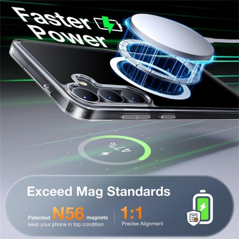 Geïntegreerde magneten van hoge sterkte zorgen voor een veilige en stabiele verbinding met magnetische opladers, autohouders en andere compatibele accessoires. De magnetische uitlijning zorgt voor naadloos draadloos opladen en betrouwbare bevestiging zonder de hoes te verwijderen.