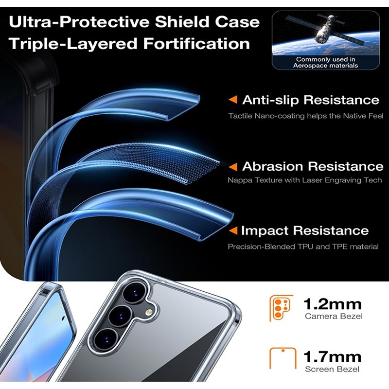 De case is gebouwd met een interne schokabsorberende structuur en een versterkte TPU bumper, die de kracht van vallen en stoten vermindert. Geïntegreerde luchtkussenzones bieden extra bescherming voor dagelijks gebruik zonder onnodige bulk toe te voegen.