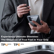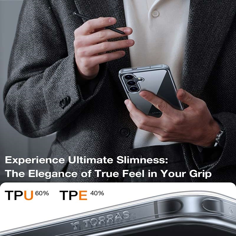 De Torras Skin-Touch case is ontworpen voor gebruikers die op zoek zijn naar verfijnde esthetiek in combinatie met betrouwbare bescherming voor elke dag. Hij is gemaakt van een mix van twee materialen, stijf PC en flexibel TPU, en biedt duurzaamheid met behoud van een slank profiel en een comfortabel, zacht gevoel in de hand.