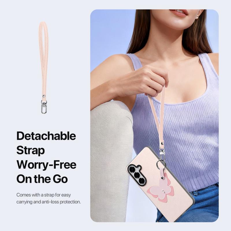 Er wordt een afneembare riem meegeleverd voor gemakkelijk dragen tijdens het reizen, woon-werkverkeer of dagelijkse activiteiten. Het biedt extra beveiliging tegen verlies en geeft je Samsung Galaxy S26 een modieus accessoire tintje.