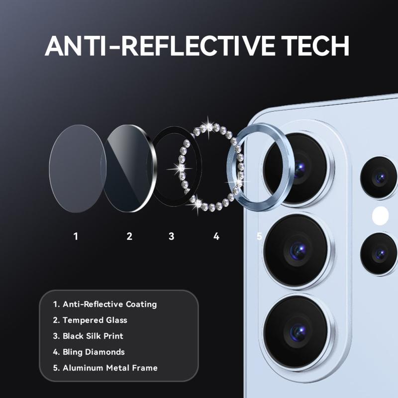 Voeg glans en bescherming toe aan je Samsung Galaxy S26 Ultra met de NORTHJO Camera Lens Protector. Ontworpen met glinsterende steentjes en precisiegeslepen gehard glas, houdt het je cameralens veilig tegen krassen, stof en stoten terwijl het een vleugje elegantie en luxe toevoegt.