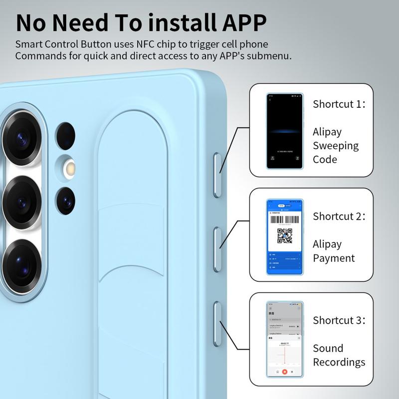 Deze slimme hybride hoes is uitgerust met drie intelligente NFC-knoppen waarmee je met één druk op de knop snel toegang krijgt tot apps als Camera, Zaklamp of Screenshot. Niet opladen, geen extra apps - gewoon eenvoudige, directe functionaliteit.