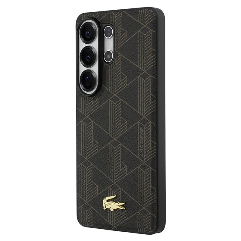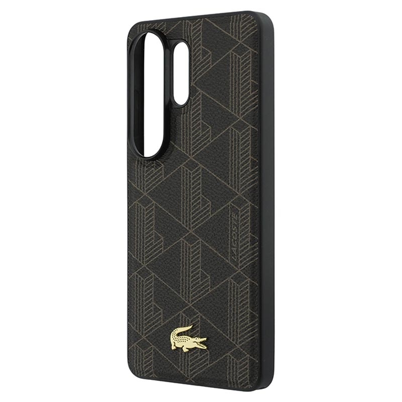 Lacoste PVC Blend Monogram Gold Logo magnetische hoesje voor Samsung Galaxy S26 Ultra - achterkant met krokodillenlogo