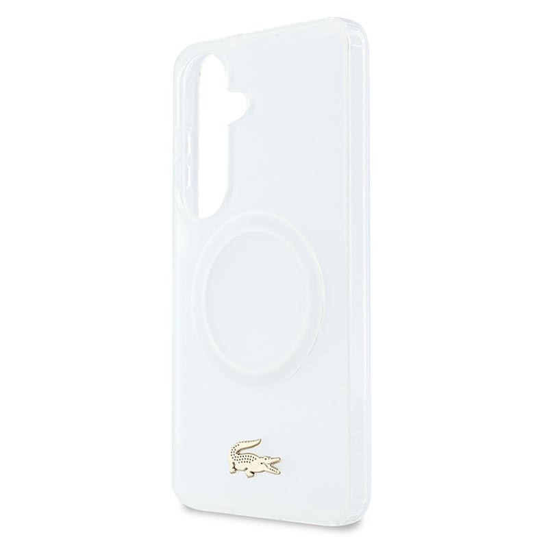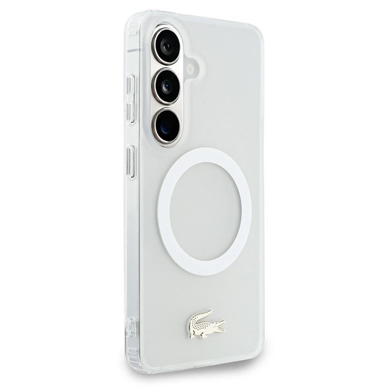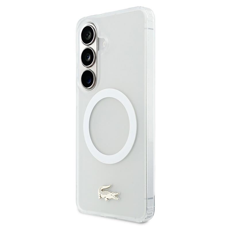 Lacoste Frosted Finish Gold Logo Hybride Hoesje voor Samsung Galaxy S26 - MagSafe compatibel, goud logo en cameraframe Premium achterkant