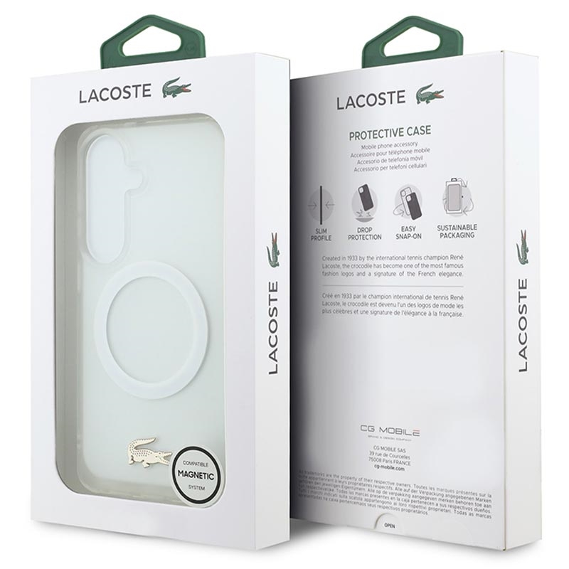 De Lacoste Frosted Finish Gold Logo MagSafe Case is de ideale keuze voor iedereen die op zoek is naar een balans tussen luxe en functionaliteit. Hij is slank genoeg voor dagelijks comfort en toch sterk genoeg om je apparaat te beschermen, terwijl de gouden details hem laten opvallen als een stijlvol accessoire.
