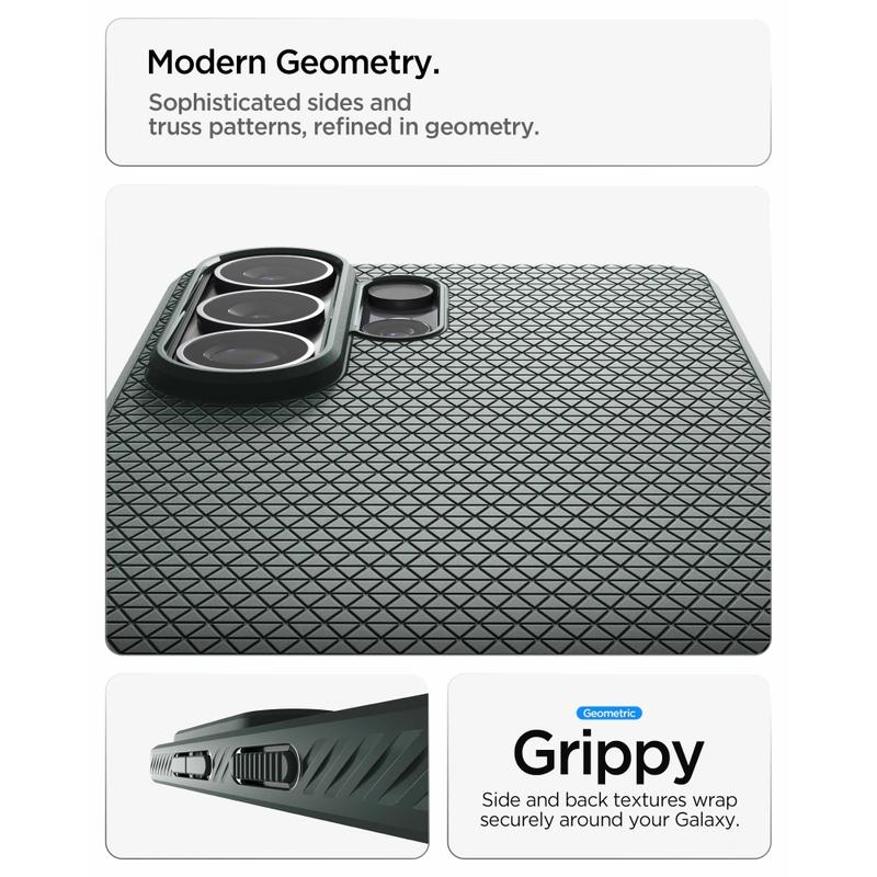 Spigen's Air Cushion Technology, ingebouwd in de hoeken van deze case, verspreidt schokken tijdens botsingen - een functie geïnspireerd door auto-airbagsystemen, aangepast aan smartphonebescherming.