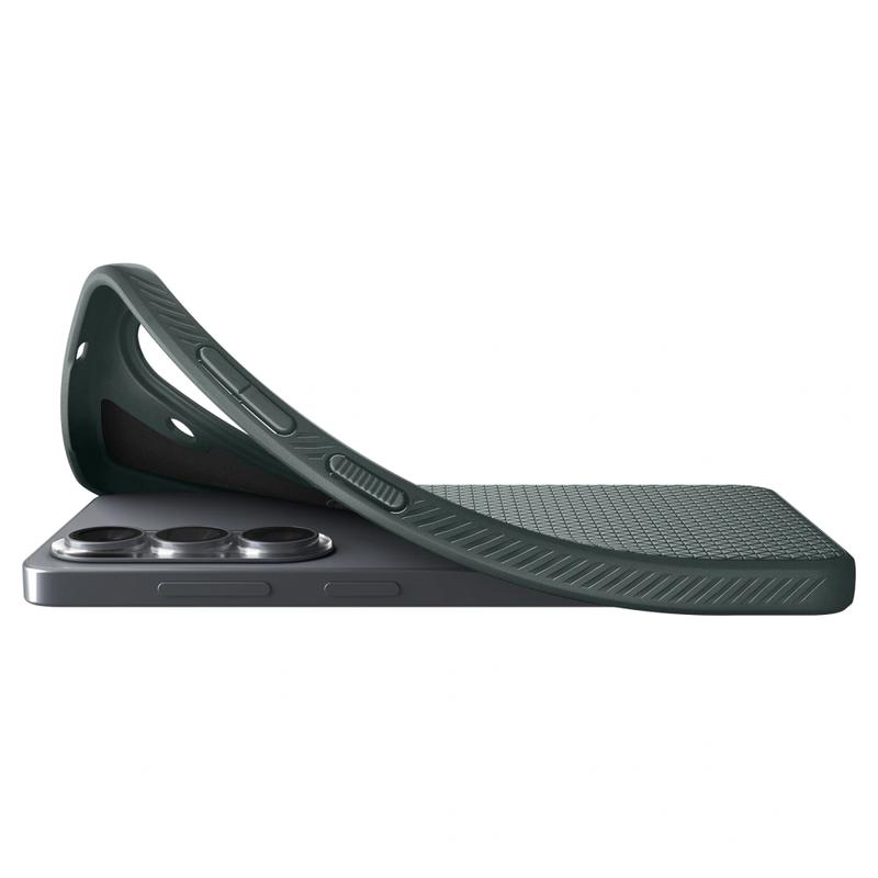 Spigen's Air Cushion Technology, ingebouwd in de hoeken van deze case, verspreidt schokken tijdens botsingen - een functie geïnspireerd door auto-airbagsystemen, aangepast aan smartphonebescherming.