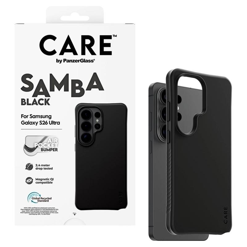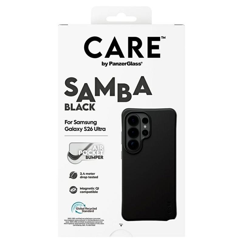 Geef je Samsung Galaxy S26 Ultra een stijlvolle upgrade en bescherm hem tegelijkertijd dag in dag uit. De CARE by PanzerGlass Qi Samba Case is gemaakt van 100% gerecycled TPU en ontworpen om dagelijkse stoten, vallen en krassen op te vangen zonder in te boeten aan comfort. De verbeterde hoekbescherming helpt schokken op te vangen, terwijl de gladde afwerking prettig aanvoelt en de Samsung Galaxy S26 Ultra gemakkelijker vast te houden is.