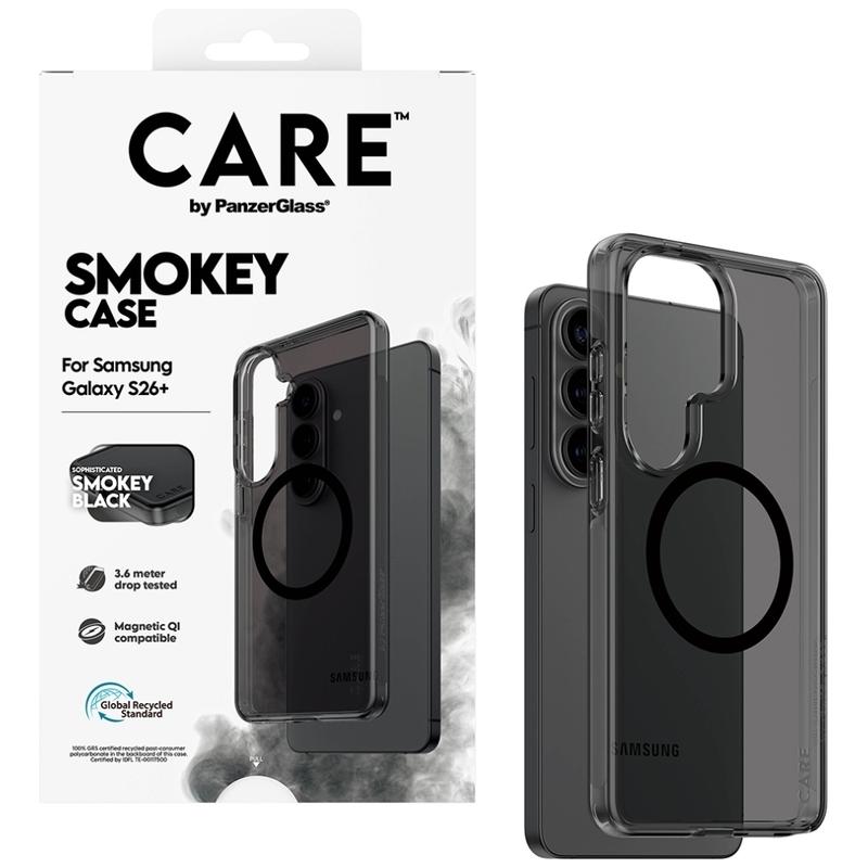 • Care by PanzerGlass Urban Explorer Smokey magnetische hoesje voor Samsung Galaxy S26+ - 100% gerecycled plastic, getest bij een val van 3,6 m, garantie tegen vergeling, verbeterde camerabescherming