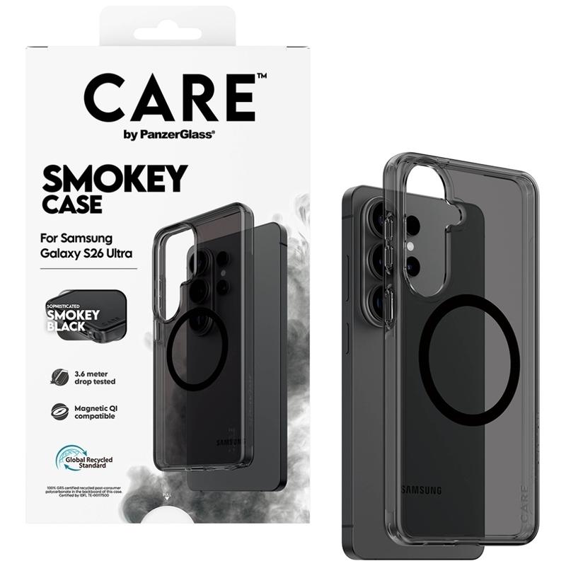 • Care by PanzerGlass Urban Explorer Smokey magnetische hoesje voor Samsung Galaxy S26 Ultra - 100% gerecycled plastic, getest op vallen vanaf 3,6 m, garantie tegen vergeling, verbeterde camerabescherming