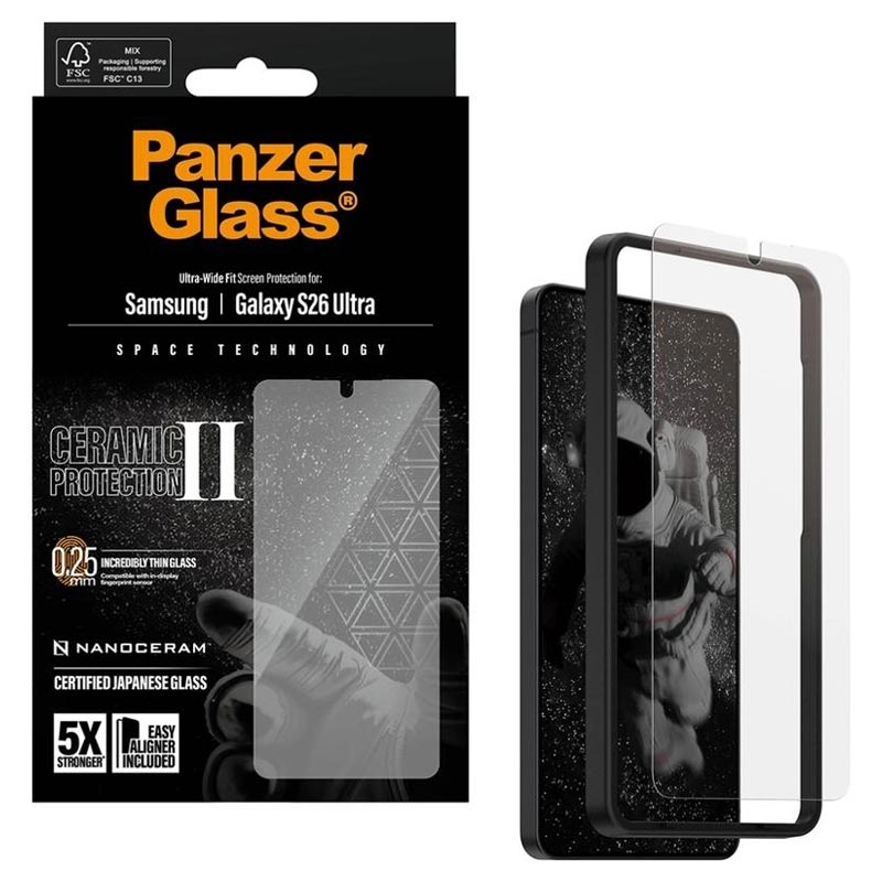 • PanzerGlass Ceramic II Protection Ultra-Wide Fit EasyAligner-schermbeschermer voor Samsung Galaxy S26 Ultra - Glaskeramiek, vingerafdrukbestendig, geschikt voor hoesjes