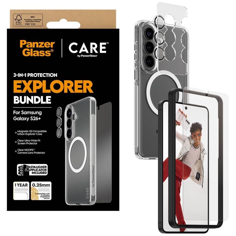 Samsung Galaxy S26+ PanzerGlass Care 3-in-1 Explorer-bundel - Doorzichtig