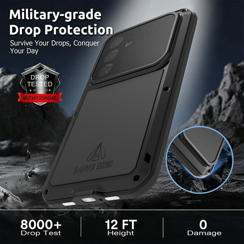 De Love Mei serie is geïnspireerd door militaire en industriële techniek, waarbij gebruik wordt gemaakt van meerlaagse bescherming met metalen frames en siliconen demping - een structuur die bestand is tegen vallen van meer dan 2 meter met behoud van touchscreen gevoeligheid.