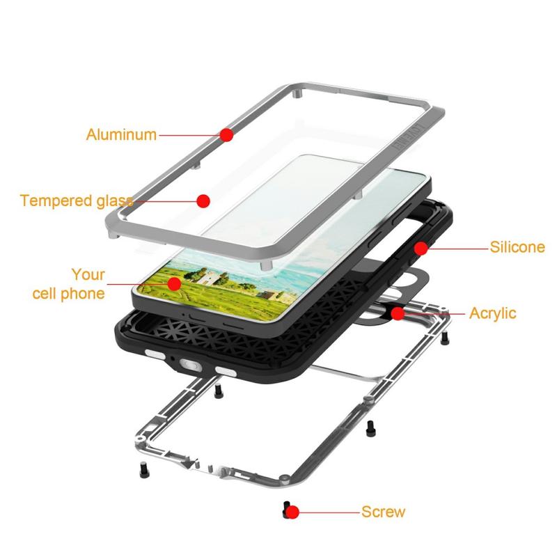 De Love Mei serie is geïnspireerd door militaire en industriële techniek, waarbij gebruik wordt gemaakt van meerlaagse bescherming met metalen frames en siliconen demping - een structuur die bestand is tegen vallen van meer dan 2 meter met behoud van touchscreen gevoeligheid.