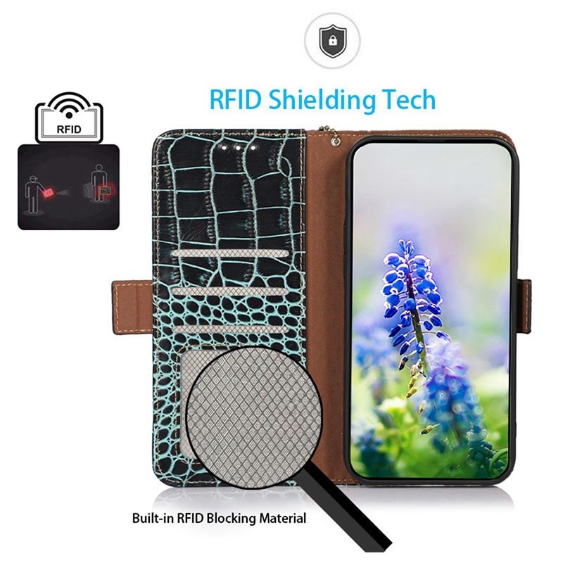 Een lichtgewicht en zachte portemonnee met een unieke krokodillentextuur, de perfecte keuze om uw Samsung Galaxy S26 Ultra te beschermen en onbeschadigd te houden. Het is gemaakt van hoogwaardig echt leer en innerlijk TPU-materiaal, ontworpen met drie kaartsleuven, een ID-sleuf en een zak voor contant geld, ideaal voor het dragen van uw essentie naast uw Samsung Galaxy S26 Ultra. Ook blokkeert RFID -technologie signalen effectief en bewaart uw gegevens beveiligd.