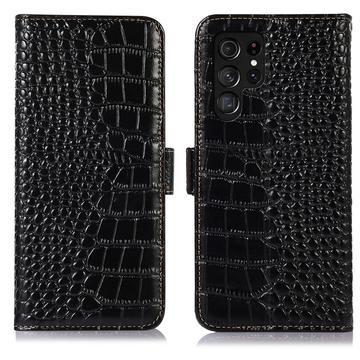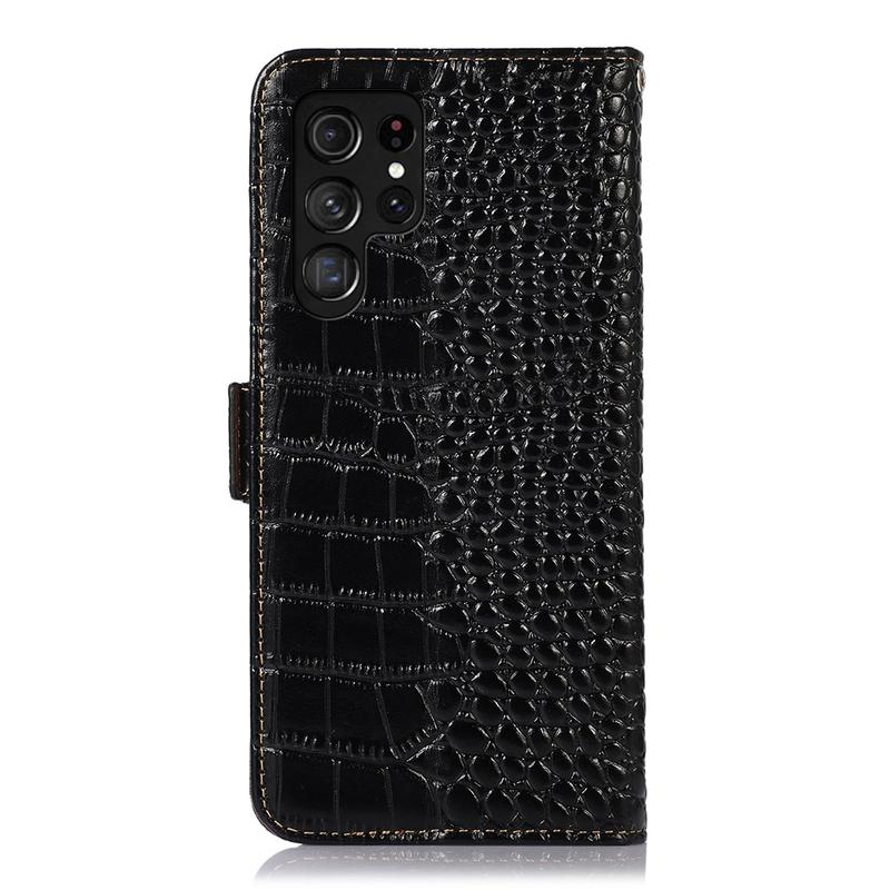 Samsung Galaxy S26 Ultra Crocodile Series Wallet Leren Hoesje met RFID - Zwart