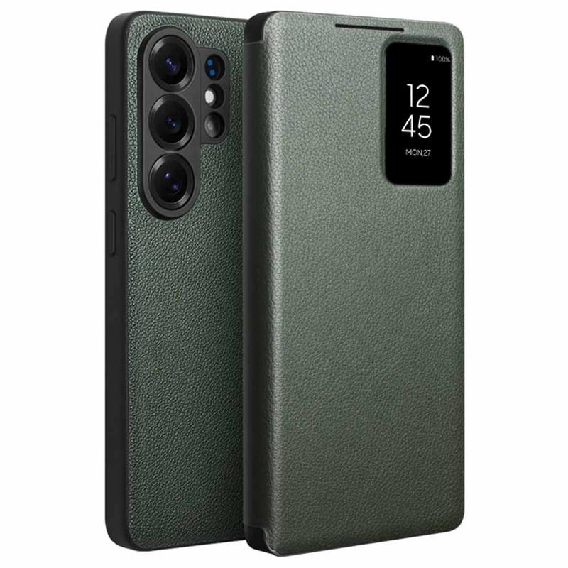 Het luxueuze Qialino Smart View flip hoesje voor de Samsung Galaxy S26 Ultra is gemaakt van echt rundleer voor een superieure stijl en elegantie. Dit slanke, stijlvolle leren flip hoesje ondersteunt de slimme wek- en slaapfunctie van je Samsung Galaxy S26 Ultra, terwijl het kleine kijkvenster op de flip voorzijde je in staat stelt om snel de scherminformatie te controleren. Hij past perfect bij de vorm van je Samsung Galaxy S26 Ultra en behoudt de volledige functionaliteit.