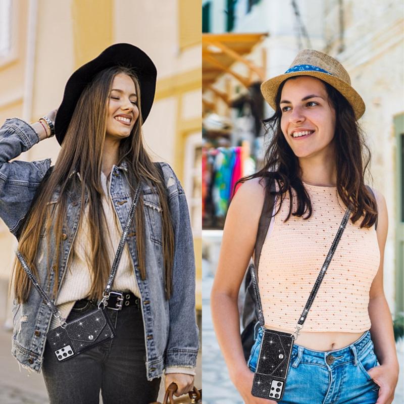 De hoogwaardige hoes uit de Stardust-serie is de juiste keuze om je Samsung Galaxy S26 Ultra te beschermen tegen mogelijke schade. Het heeft een kaarthouder aan de achterkant met een drukknoop die geweldig is om je essentiële kaarten op te bergen en ze veilig te houden. Een glanzend glitteroppervlak voegt een vleugje glamour toe aan je telefoon. Daarnaast wordt de hoes geleverd met een schouderriem van 150 cm, zodat je je Samsung Galaxy S26 Ultra overal mee naartoe kunt nemen.