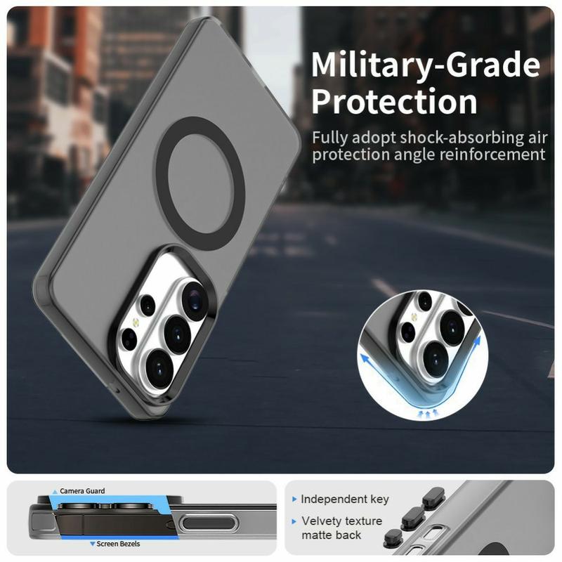 De UltraGuard Matte MagSafe Case biedt een perfecte balans tussen bescherming en een slank ontwerp voor je Samsung Galaxy S26 Ultra. Deze slanke, lichtgewicht case is gemaakt van een duurzame mix van TPU en PC-materialen. De matte, doorschijnende afwerking geeft je Samsung Galaxy S26 Ultra een stijlvolle look terwijl MagSafe opladen eenvoudig toegankelijk blijft. Dankzij de superieure bescherming tegen vallen en krassen is dit een uitstekende keuze voor dagelijks gebruik.