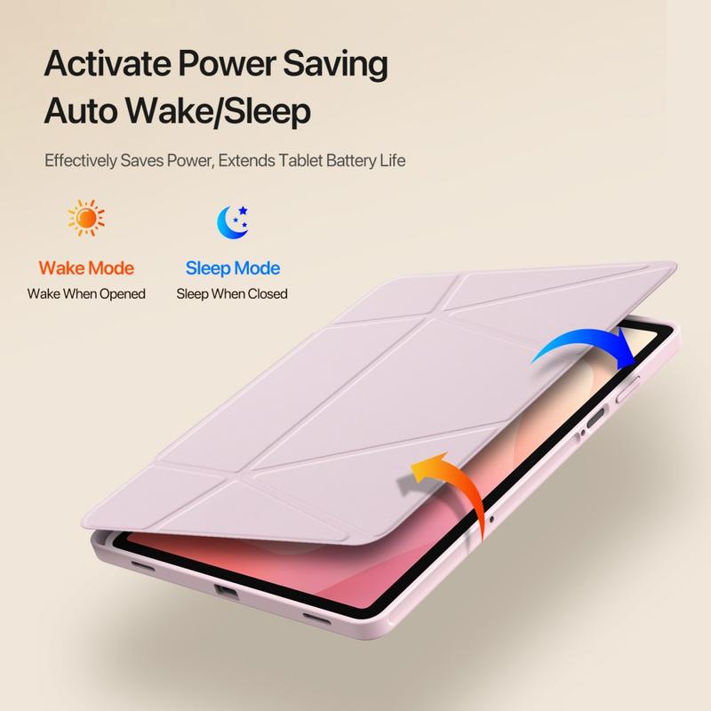 Maak van je Samsung Galaxy Tab S11 een echt veelzijdig werkstation. De DUX DUCIS Vers Series hoes tilt de tablet met ongeveer 4,5 cm op zodat je hem zonder spanning kunt bekijken, beschermt hem tegen de dagelijkse stoten en past in elke tas dankzij de vederlichte constructie. Van binge-watching tot schetsen, deze opvouwbare hoes past zich in enkele seconden aan.