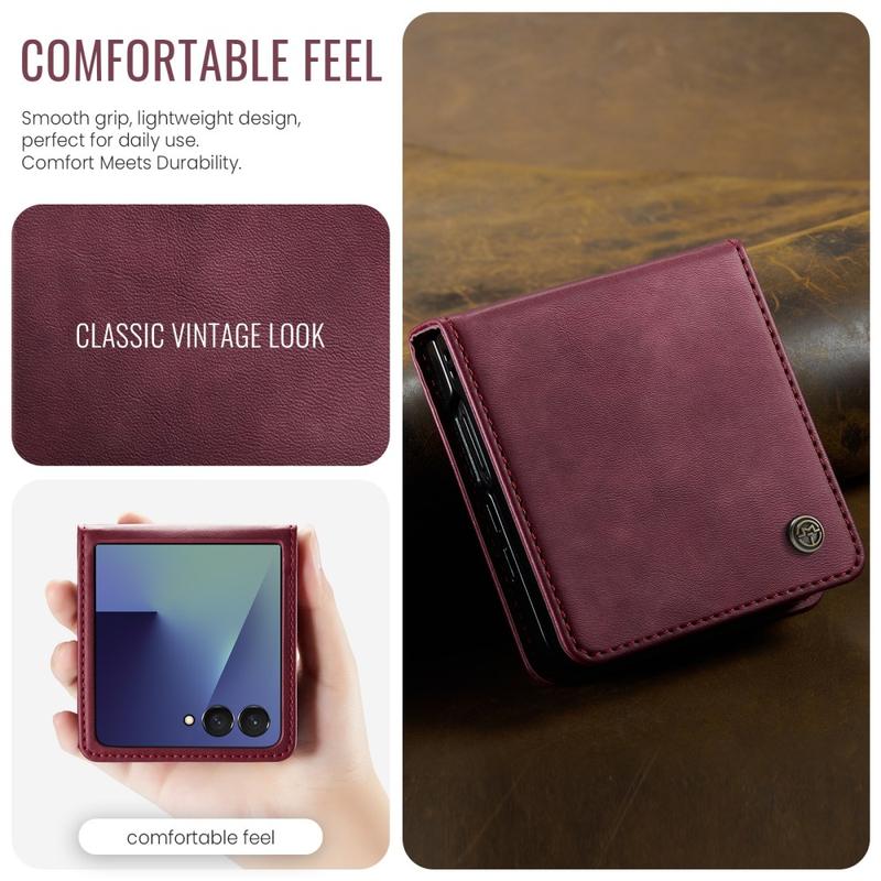 Samsung Galaxy Z Flip7 Caseme 033 Kalf textuur portemonnee hoesje met RFID-blokkering - Rood