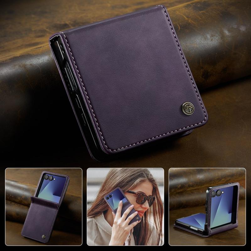 Samsung Galaxy Z Flip7 Caseme 033 Kalf textuur portemonnee hoesje met RFID-blokkering - Paars