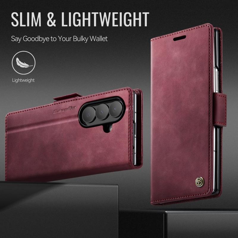De CASEME 033 Series Wallet Case voor Samsung Galaxy Z Fold7 is gemaakt van kalf textuur polyurethaan gecombineerd met TPU, en biedt full-body bescherming tegen krassen, stoten en dagelijks gebruik met behoud van een premium, elegante look.