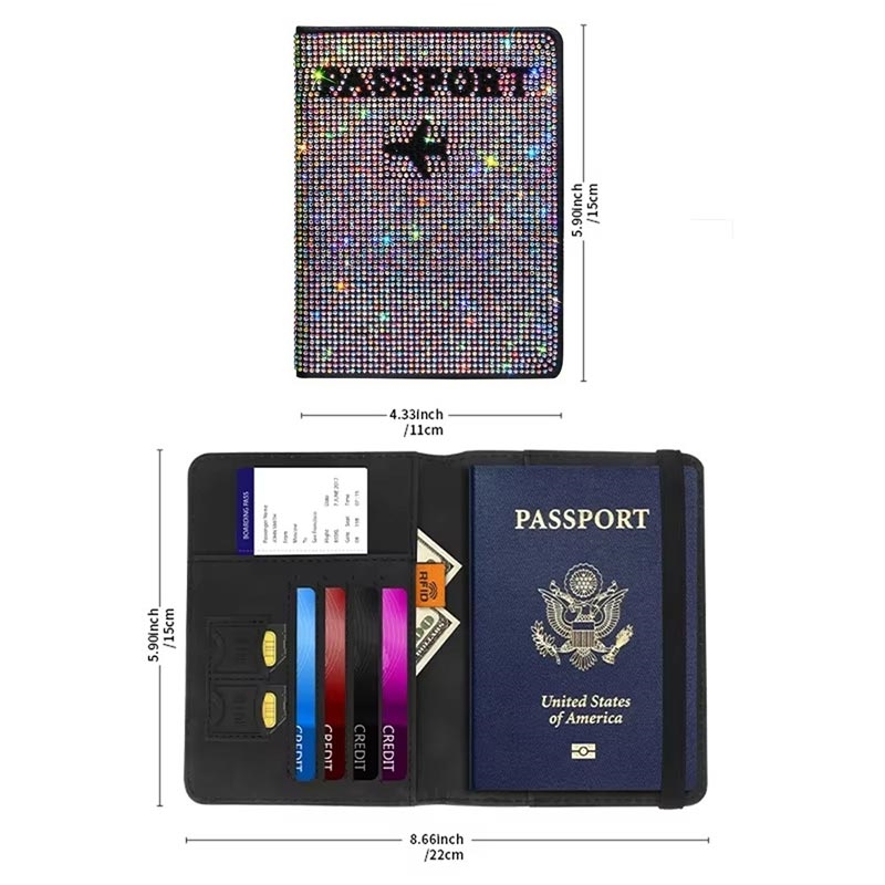 Set met paspoorthoes en bagagelabel met strass - Fonkelende Polyurethaan Reis Organiser